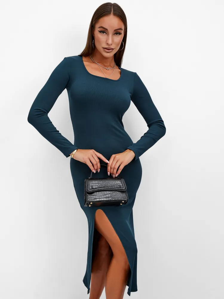 Стильное и красивое платье женское на весну, лето, зиму и осень. Идеальное классическое черное платье в обтяжку на все случаи жизни: как повседневное, в офис, как вечернее новогоднее, праздничное нарядное. Это платье лапша женское идеально подойдет для создания элегантного образа. Его длина миди делает его очень женственным, а разрез придает ему небольшую изюминку и сексуальность.