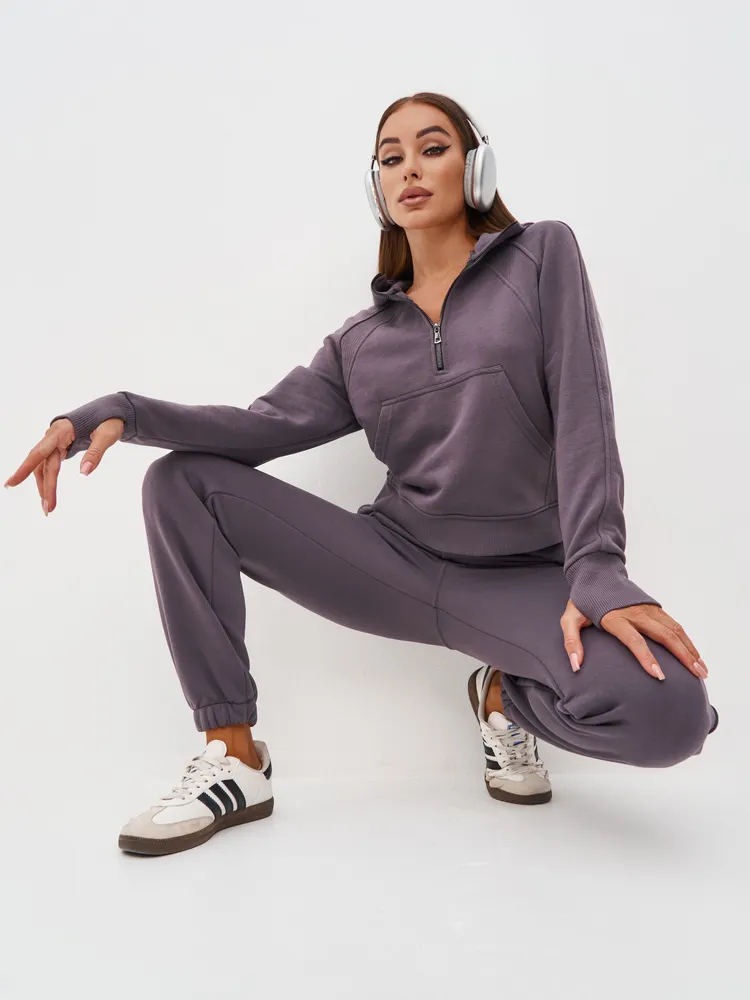 Элегантный и женственный фиолетовый спортивный костюм на молнии от бренда MB Creation by Bachani. Трикотажный костюм - мягкий, легкий, приятный к телу комплект, который подарит Вам уют и комфорт. Футер (трехнитка петля) без начеса - это материал состоящий из натурального хлопка, дышащий комфортный, прекрасно подходит для любого времени года- весна, лето, осень.