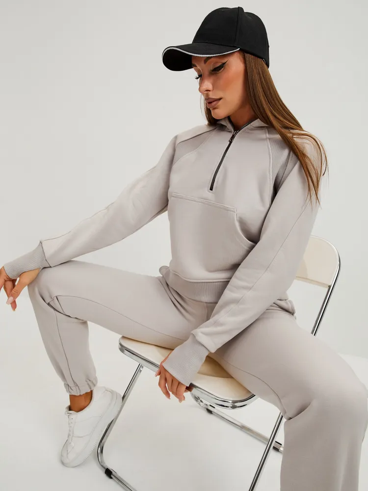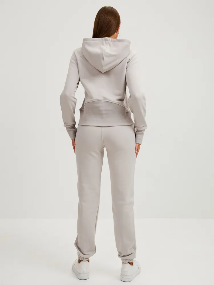 Элегантный и женственный серый спортивный костюм на молнии от бренда MB Creation by Bachani. Трикотажный костюм - мягкий, легкий, приятный к телу комплект, который подарит Вам уют и комфорт. Футер (трехнитка петля) без начеса - это материал состоящий из натурального хлопка, дышащий комфортный, прекрасно подходит для любого времени года- весна, лето, осень.