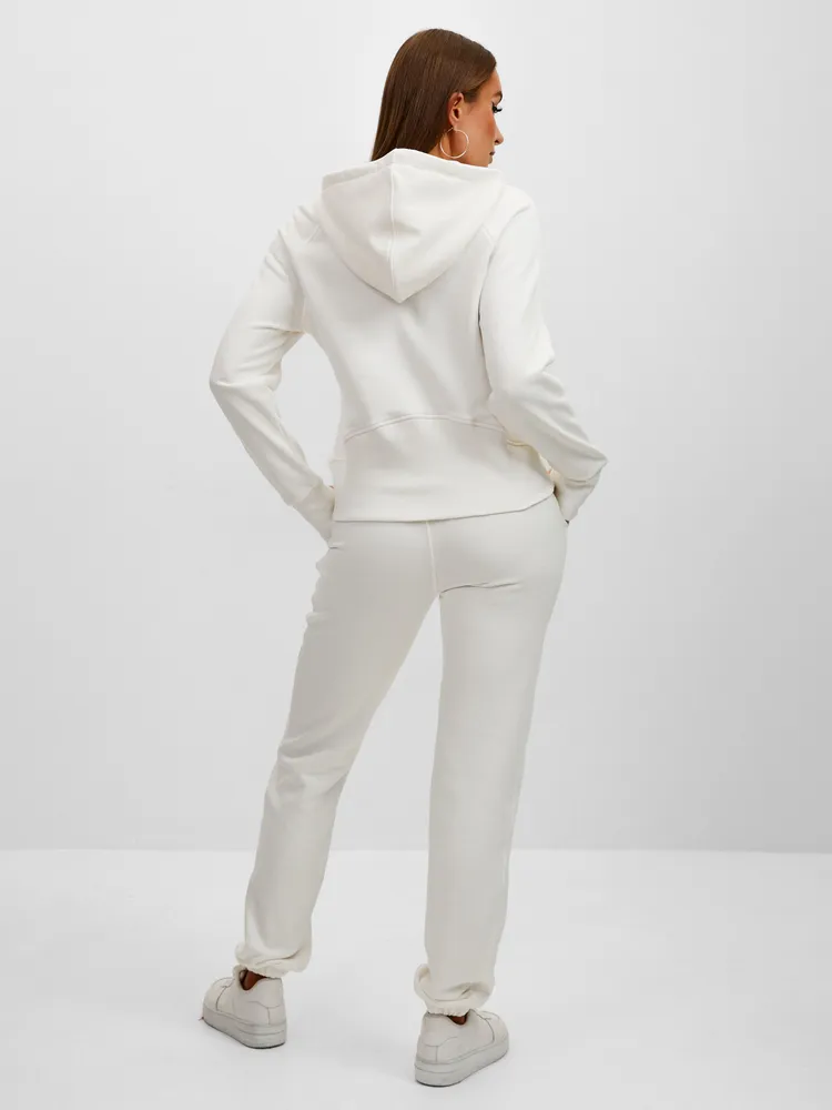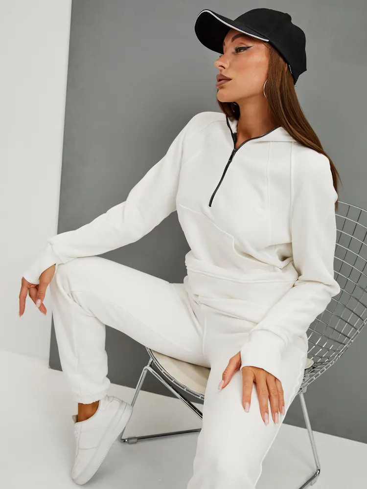 Элегантный и женственный белый спортивный костюм на молнии от бренда MB Creation by Bachani. Трикотажный костюм - мягкий, легкий, приятный к телу комплект, который подарит Вам уют и комфорт. Футер (трехнитка петля) без начеса - это материал состоящий из натурального хлопка, дышащий комфортный, прекрасно подходит для любого времени года- весна, лето, осень.