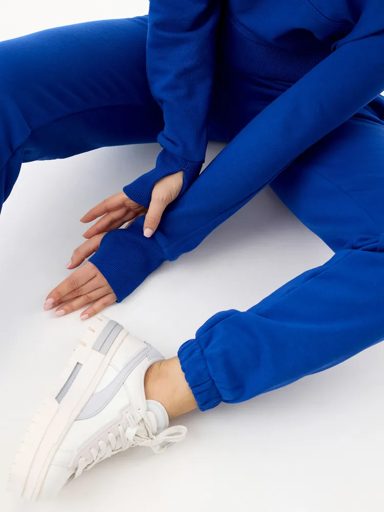 Элегантный и женственный синий спортивный костюм на молнии от бренда MB Creation by Bachani. Трикотажный костюм - мягкий, легкий, приятный к телу комплект, который подарит Вам уют и комфорт. Футер (трехнитка петля) без начеса - это материал состоящий из натурального хлопка, дышащий комфортный, прекрасно подходит для любого времени года- весна, лето, осень.