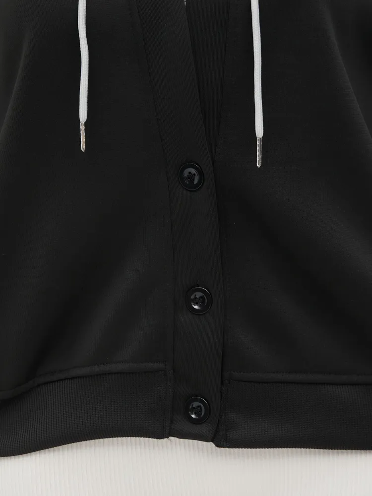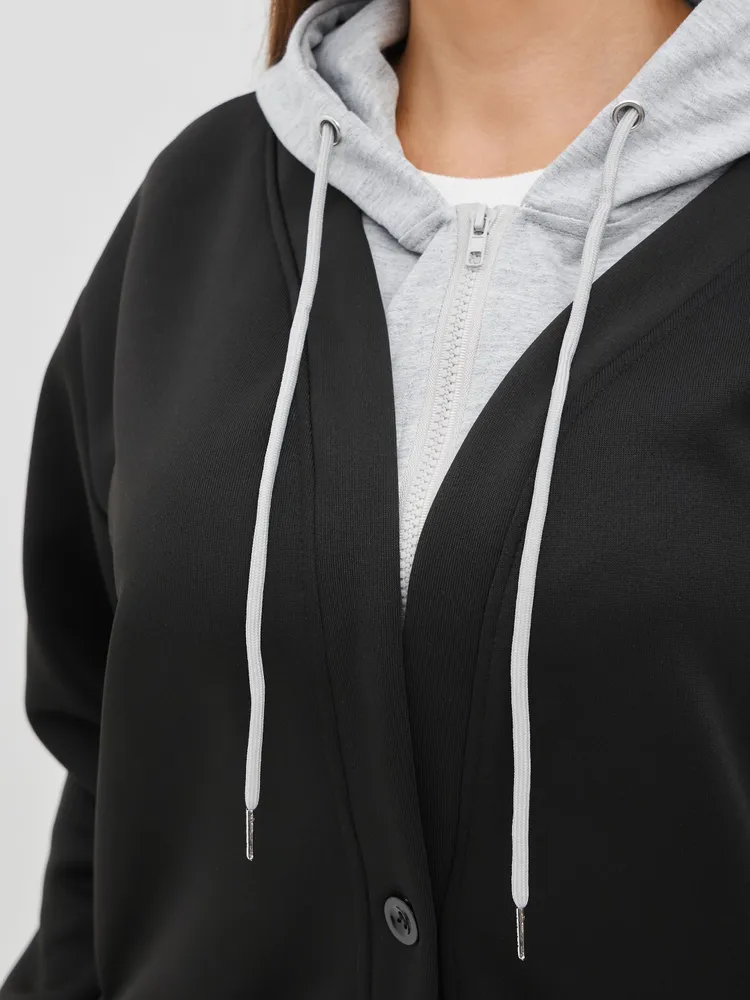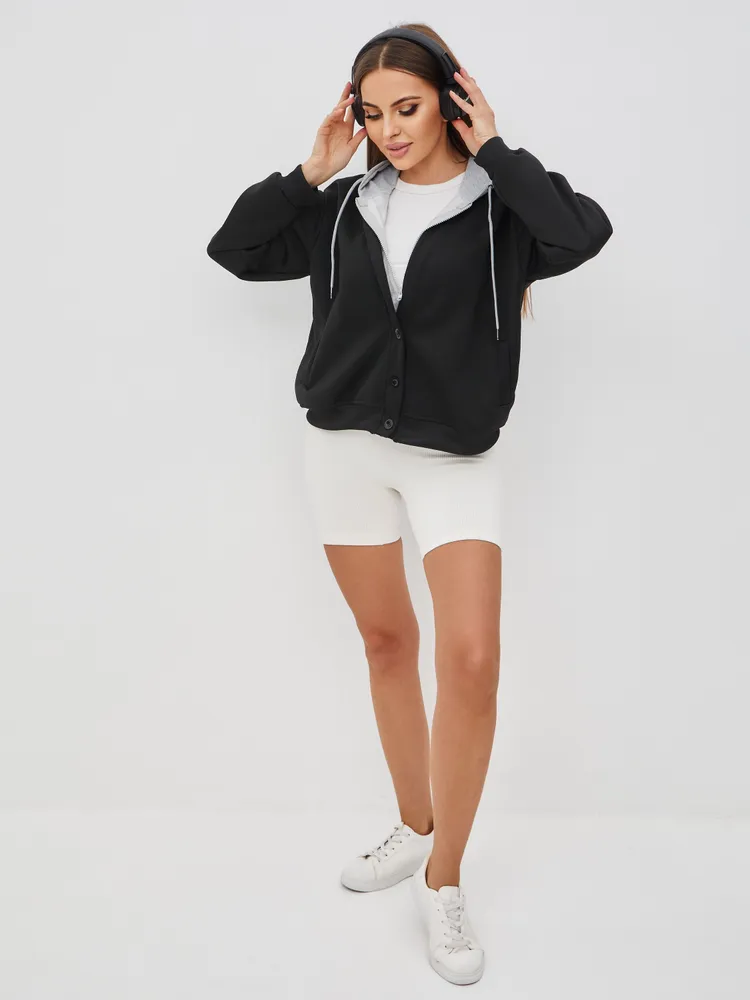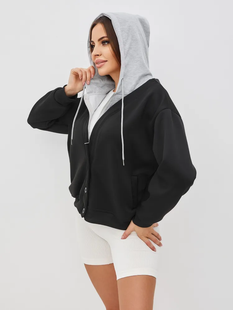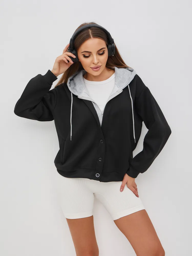 Этот стильный худи для женщин с капюшоном и пуговицами станет идеальным дополнением к вашему гардеробу. Изготовленный из высококачественных материалов, он обладает комфортом и оригинальным дизайном. Худи прекрасно комбинируется со многими нарядами, благодаря чему вы сможете создавать разнообразные образы — от повседневного до более нарядного. Удобный капюшон добавляет функциональности, позволяя защититься от прохладного ветра в прохладную погоду